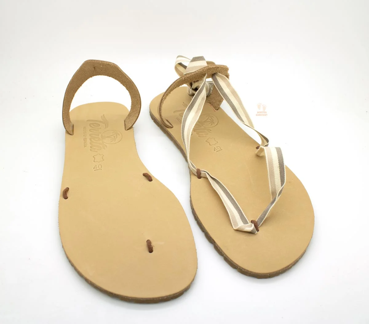 Como hemos comentado el cierre de estas sandalias barefoot es con la propia cinta que podrá ajustar a la pierna y tobillo, este modelo de sandalias es perfecto para las personas que tienen un empeine o tobillo más ancho ya que las cintas se las podrá ajustar a su gusto. La suela se compone de 3 ojales en la suela + 1 ojal en la parte del talón para que pueda pasar la cinta y jugar con el diseño.