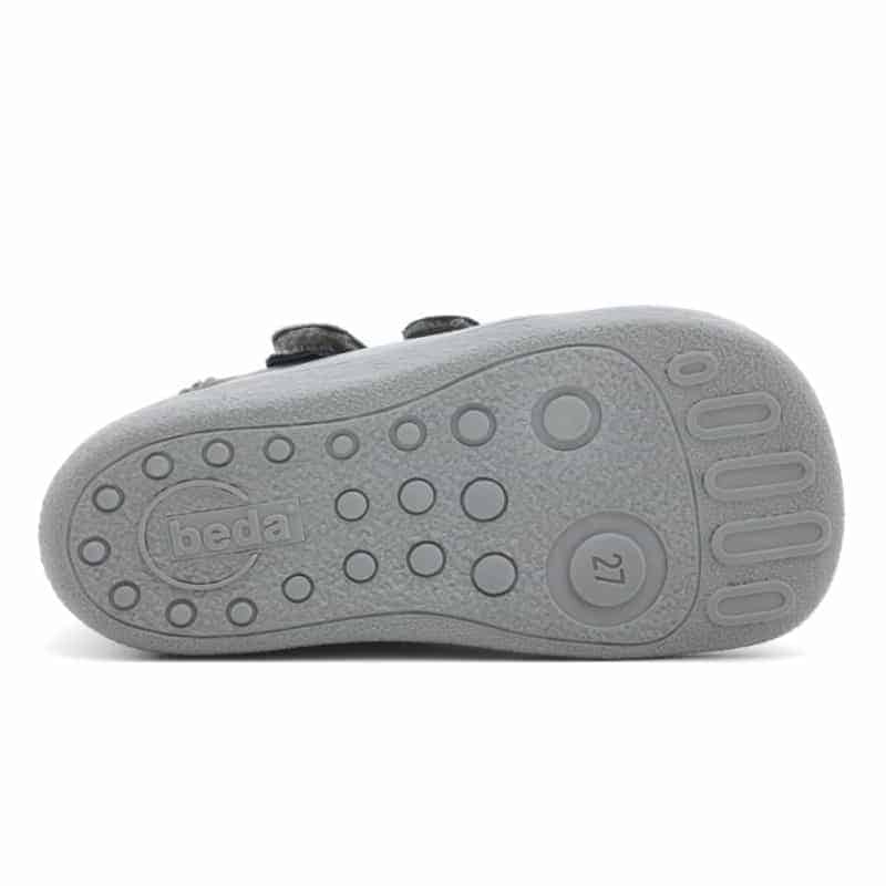 Botas Barefoot de la marca BEDA en su modelo LUC en color GRIS y NEGRO, fabricadas con una membrana TEPOR de cuero liso que sirve como repelente del agua. Son ligeras y flexibles, con un tacón sin refuerzo y una amplia puntera. Se incluye una plantilla extraíble y ligeramente contorneada.