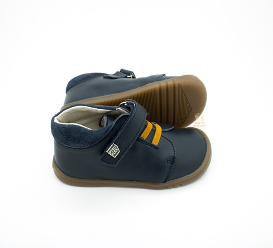 Nuevo modelo de botines respetuosos de Pirufin para la temporada de otoño-invierno fabricados en una excelente PIEL (gamo) y en color AZUL NAVY + MOSTAZA