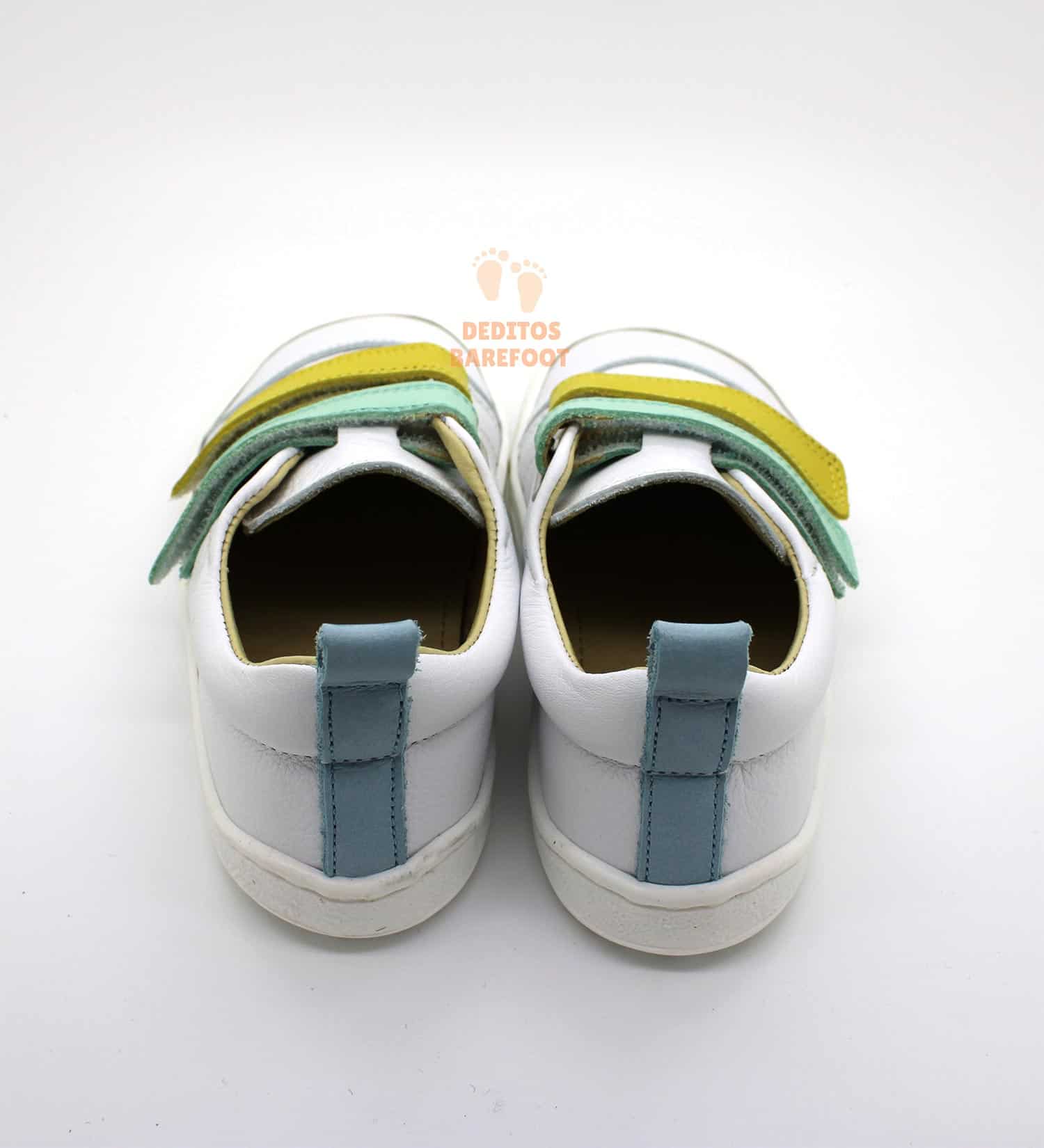 Calzado Respetuoso FlexiNens en Piel color Blanco, amarillo y verde.