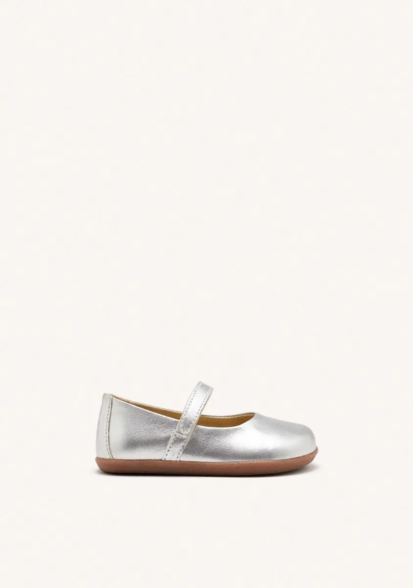 Sin refuerzos restrictivos y con drop cero estas bailarinas tipo merceditas respetuosas promueven el desarrollo muscular óptimo. La puntera es amplia para que los deditos se sientan libres.