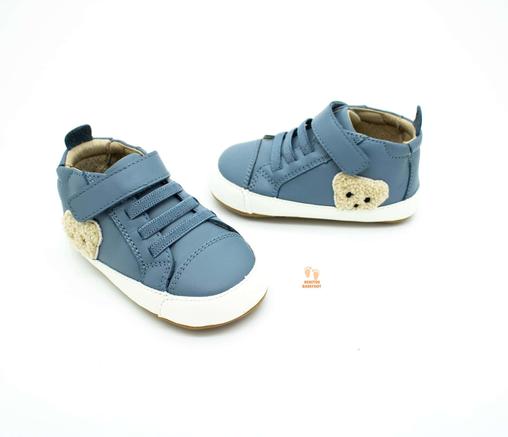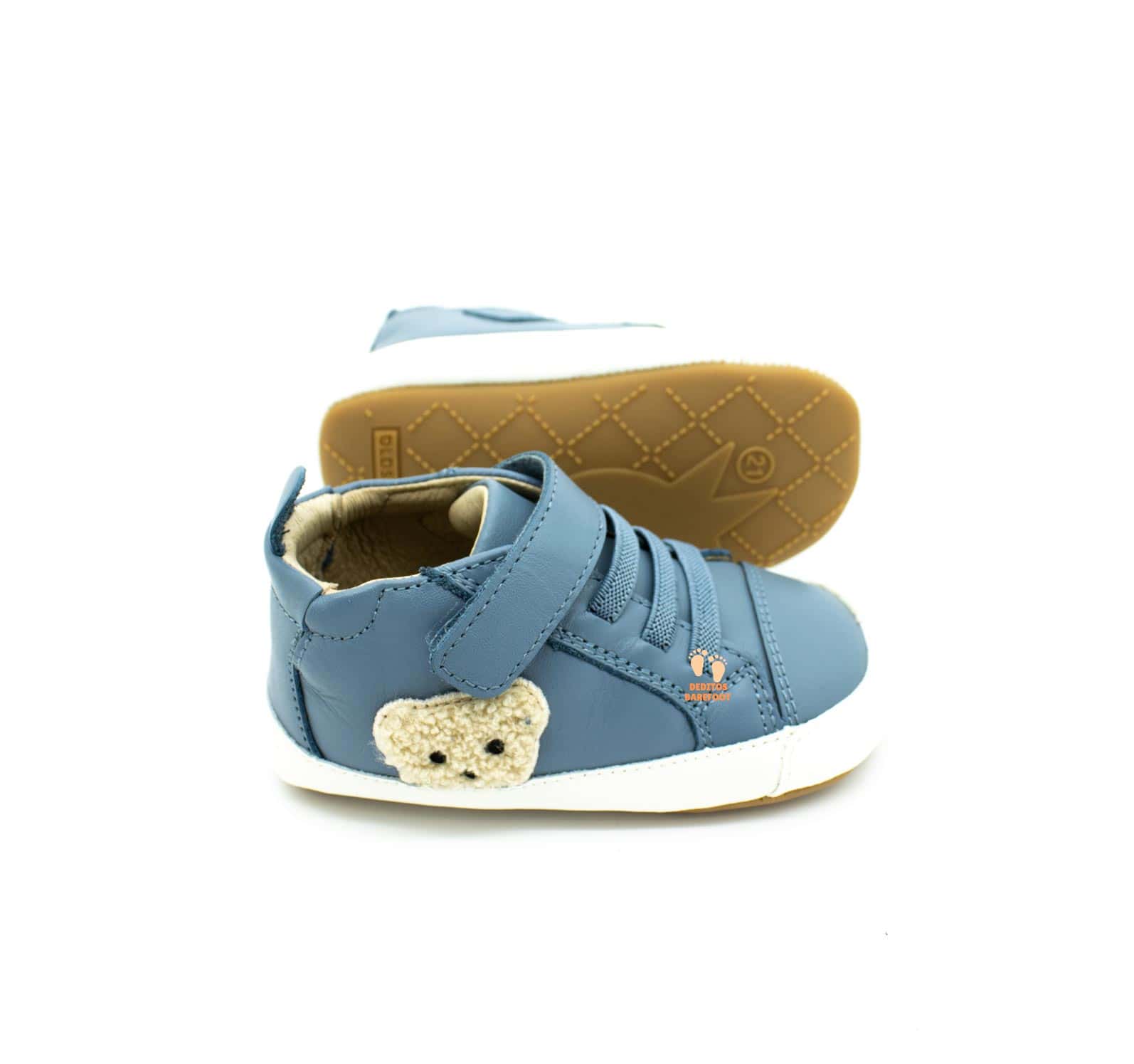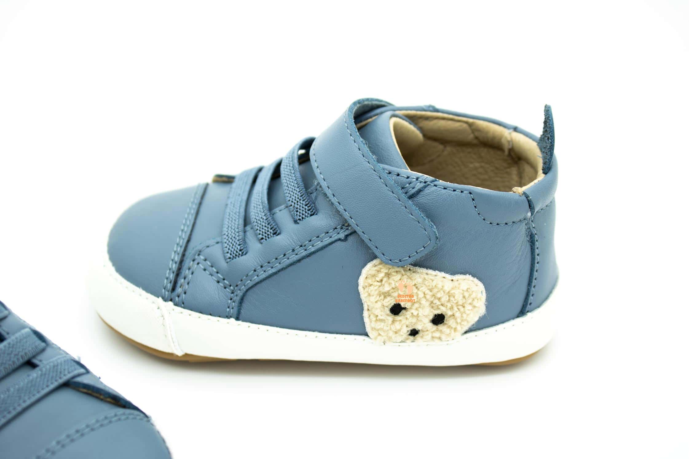 Nuevo modelo de zapatos respetuosos para primeros pasos de OldSoles para todo el año , en esta ocasión OldSoles ha fabricado estos zapatos en piel lisa de color AZUL . En cuanto al diseño encontramos en uno de los laterales un osito «Ted Baby» en borreguillo que da un toque infantil y encantador a estos zapatitos respetuosos.
